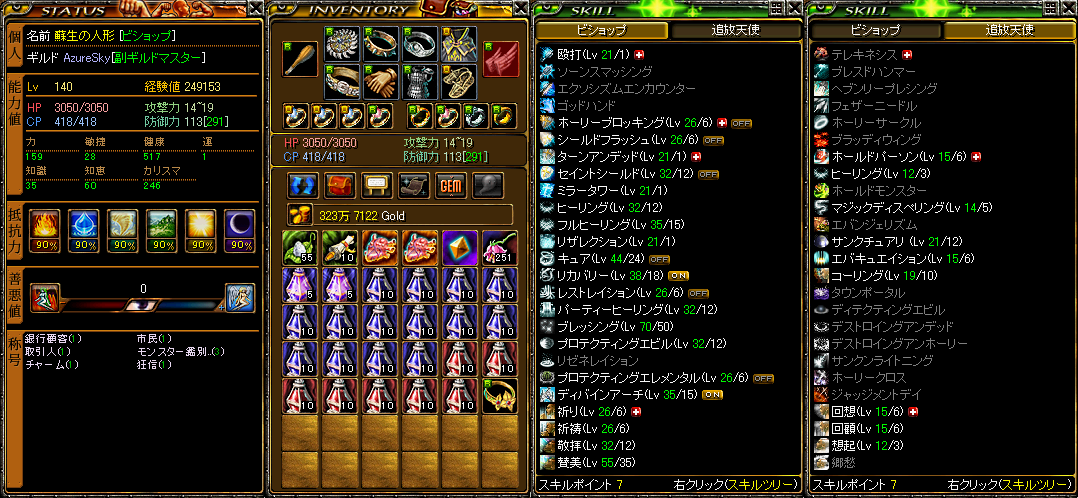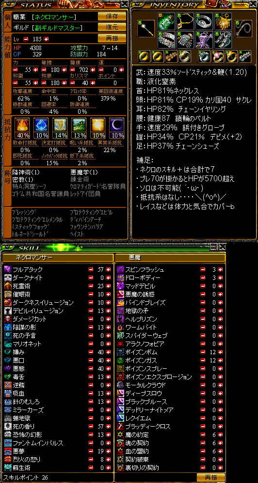 ちなみに、スキル+は 盾+3 首+3 頭+3 背+2 棍棒+2 足+1 指+1×3です^w^